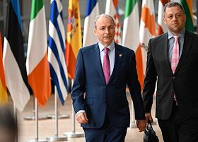 Саммит Евросоюза (ЕС) в Брюсселе. День второй. Темы обсуждения: финансово-экономическая ситуация в Европе, в том числе последствия санкций, проблемы с поставками энергоносителей и сдерживание инфляции. Премьер-министр Ирландии Михол Мартин во время саммита.