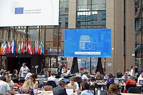 Саммит Евросоюза (ЕС) в Брюсселе. Жанровая фотография. Штаб-квартира Европейского союза (ЕС).