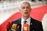 Саммит Евросоюза (ЕС) в Брюсселе. День второй. Темы обсуждения: финансово-экономическая ситуация в Европе, в том числе последствия санкций, проблемы с поставками энергоносителей и сдерживание инфляции. Премьер-министр Латвии Кришьянис Кариньш во время саммита.