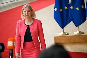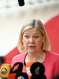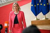 Саммит Евросоюза (ЕС) в Брюсселе. День второй. Темы обсуждения: финансово-экономическая ситуация в Европе, в том числе последствия санкций, проблемы с поставками энергоносителей и сдерживание инфляции. Премьер-министр Швеции Магдалена Андерссон во время саммита.