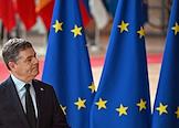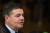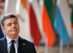 Саммит Евросоюза (ЕС) в Брюсселе. День второй. Темы обсуждения: финансово-экономическая ситуация в Европе, в том числе последствия санкций, проблемы с поставками энергоносителей и сдерживание инфляции. Министр финансов Ирландии, президент Еврогруппы Паскаль Донохо во время саммита.