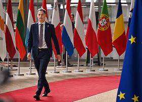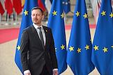 Саммит Евросоюза (ЕС) в Брюсселе. День второй. Темы обсуждения: финансово-экономическая ситуация в Европе, в том числе последствия санкций, проблемы с поставками энергоносителей и сдерживание инфляции. Премьер-министр Бельгии Александр Де Кроо во время саммита.