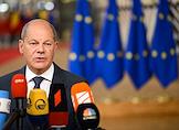 Саммит Евросоюза (ЕС) в Брюсселе. День второй. Темы обсуждения: финансово-экономическая ситуация в Европе, в том числе последствия санкций, проблемы с поставками энергоносителей и сдерживание инфляции. Канцлер Германии Олаф Шольц во время саммита.