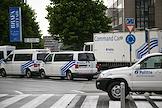 Саммит Евросоюза (ЕС) в Брюсселе. День второй. Жанровая фотография. Машины полиции у Штаб-квартиры ЕС.