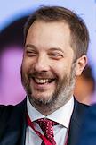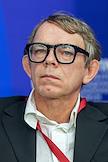 XXV Петербургский международный экономический форум (ПМЭФ) 2022 в конгрессно-выставочном центре (КВЦ) "Экспофорум". Сессия "Культура отмены": беспрецедентные вызовы для медиаотрасли. Информационная политика стран в эпоху постправды". Писатель Александр Цыпкин во время сессии.