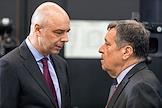 XXV Петербургский международный экономический форум (ПМЭФ) 2022 в конгрессно-выставочном центре (КВЦ) "Экспофорум". Министр финансов России Антон Силуанов (слева ) и председатель комитета Государственной думы России по бюджету и налогам Андрей Макаров (справа) перед началом пленарной сессии "Российская экономика: современные вызовы и точки опоры".