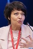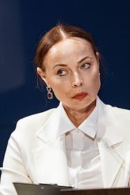 XXV Петербургский международный экономический форум (ПМЭФ) 2022 в конгрессно-выставочном центре (КВЦ) "Экспофорум". Сессия: "Культурный код финансового ЗОЖ: как медиа формируют новые поведенческие установки?". Министр культуры России Ольга Любимова во время сессии.