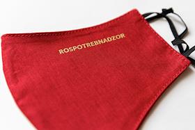 Жанровая фотография. Противовирусная защитная маска с надписью "Роспотребнадзор".