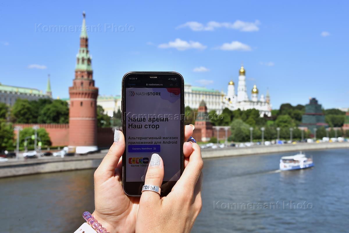 Российский магазин приложений NashStore для Android на экране смартфона. Жанровая фотография.