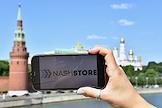 Российский магазин приложений NashStore на экране смартфона. Жанровая фотография.