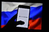 Российский магазин приложений для Android на экране смартфона. Жанровая фотография.