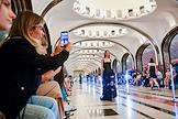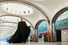 Московская неделя моды. Показ коллекций одежды молодых дизайнеров на станции метро "Маяковская".