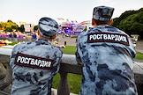 Общегородской праздник "Московский выпускной - 2022" в Парке Горького. Жанровая фотография. Сотрудники Росгвардии во время дежурства на празднике.