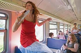Спектакль-променад "Маршрут Старухи" по мотивам произведений Даниила Хармса. Cпектакль традиционно заканчивается поездкой на электричке в Лисий нос. Артистка и пассажиры электрички.