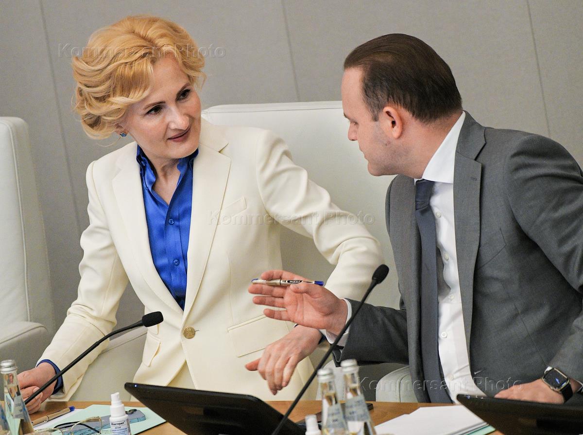 Пленарное заседание Государственной думы (ГД) России. Заместители председателя ГД России Ирина Яровая (слева) и Владислав Даванков (справа) во время заседания.