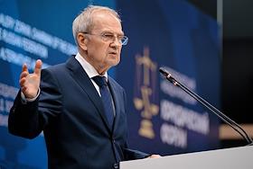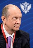 X Петербургский Международный Юридический Форум в конгрессно-выставочном центре (КВЦ) "Экспофорум". Председатель Конституционного суда России Валерий Зорькин во время работы форума.