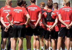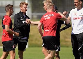 Открытая тренировка футбольной команды "Спартак" на подмосковной учебно-спортивной базе в Тарасовке.