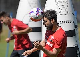 Открытая тренировка футбольной команды "Спартак" на подмосковной учебно-спортивной базе в Тарасовке. Игрок команды "Спартак" Георгий Джикия во время тренировки.
