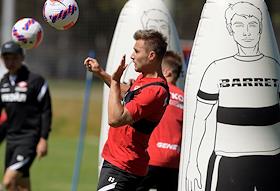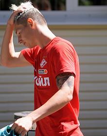 Открытая тренировка футбольной команды "Спартак" на подмосковной учебно-спортивной базе в Тарасовке. Игрок команды "Спартак" Антон Зиньковский во время тренировки.
