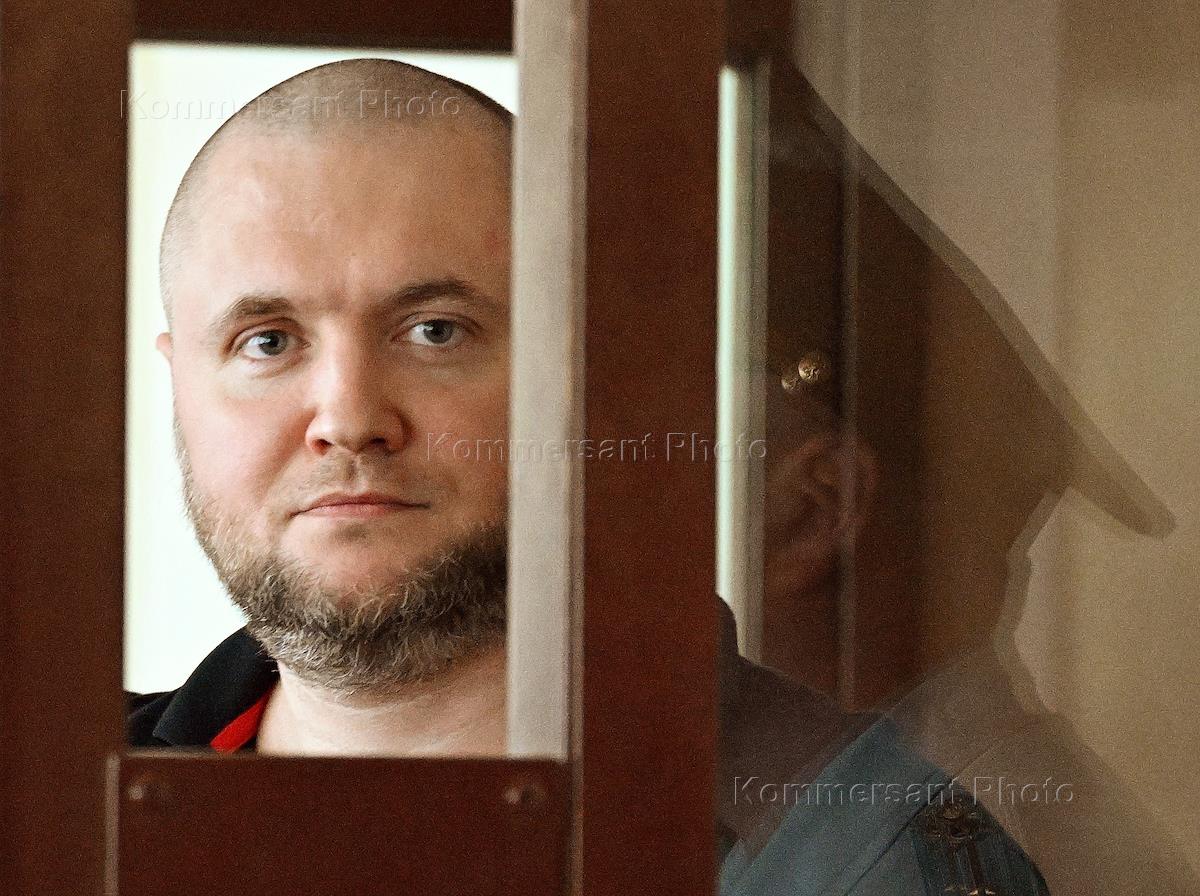Заседание суда по делу создателя Telegram-канала "Омбудсмен полиции" Владимира Воронцова, обвиняемого в вымогательстве (ст. 163 УК РФ), распространении порнографии (ст. 242 УК РФ), клевете (ст. 128.1 УК РФ) и оскорблении представителя власти (ст. 319 УК РФ), в Люблинском районном суде. Создатель Telegram-канала "Омбудсмен полиции" Владимир Воронцов во время заседания суда.