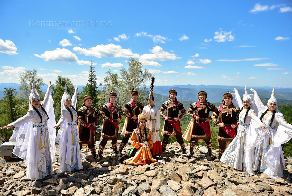 Работа всесезонного курорта "Манжерок" в Майминском районе. Жанровая фотография. Выступление фольклорного ансамбля в тематическом парке "Хранитель Алтая".