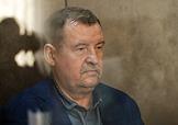 Бывший глава ГУ МВД по Санкт-Петербургу и Ленинградской области, генерал-лейтенант Сергей Умнов (справа), обвиняемый в злоупотреблении должностным положением, во время заседания Басманного районного суда.