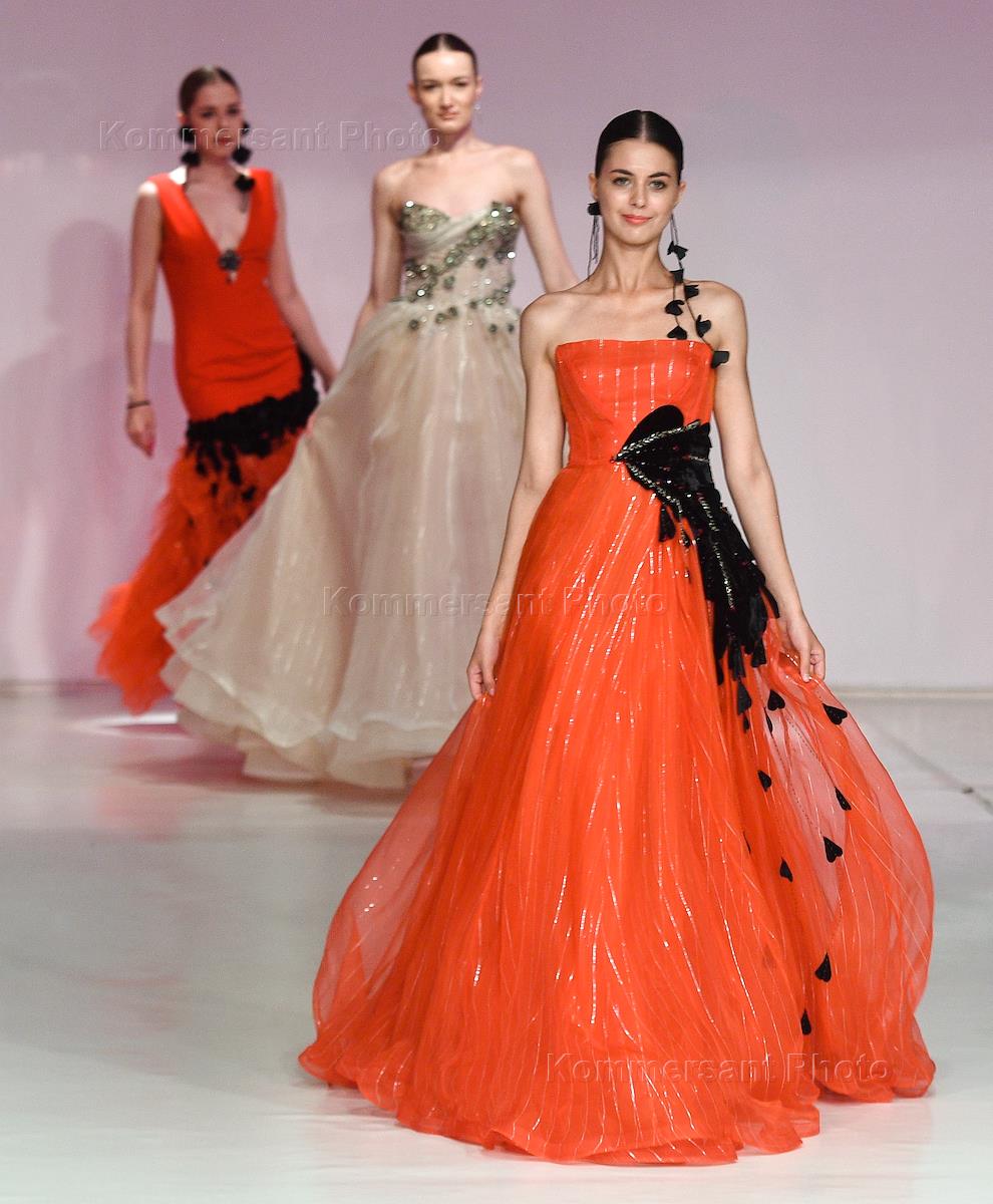 Празднование 40-летия Дома моды "Слава Зайцев" в Доме моды "Славы Зайцева". Модели во время показа коллекции в рамках празднования.