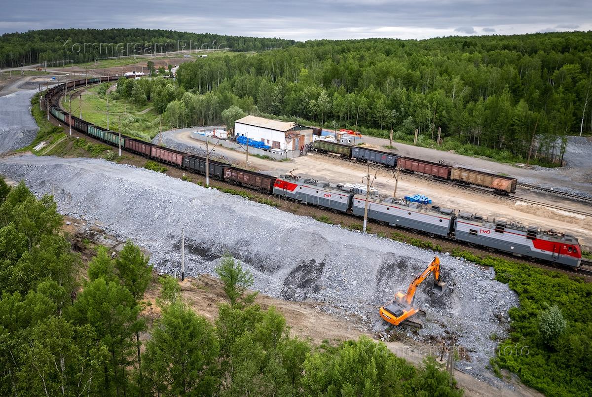 Виды Амурской области. Транссибирская магистраль. Грузовой состав с углем в районе станции Сковородино и Строительство Федеральной автомобильной дороги Р297 "Амур".