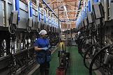 Ферма ООО "Крым агро цех" в селе Калинино. Жанровая фотография. Доярка в доильном зале коровника.