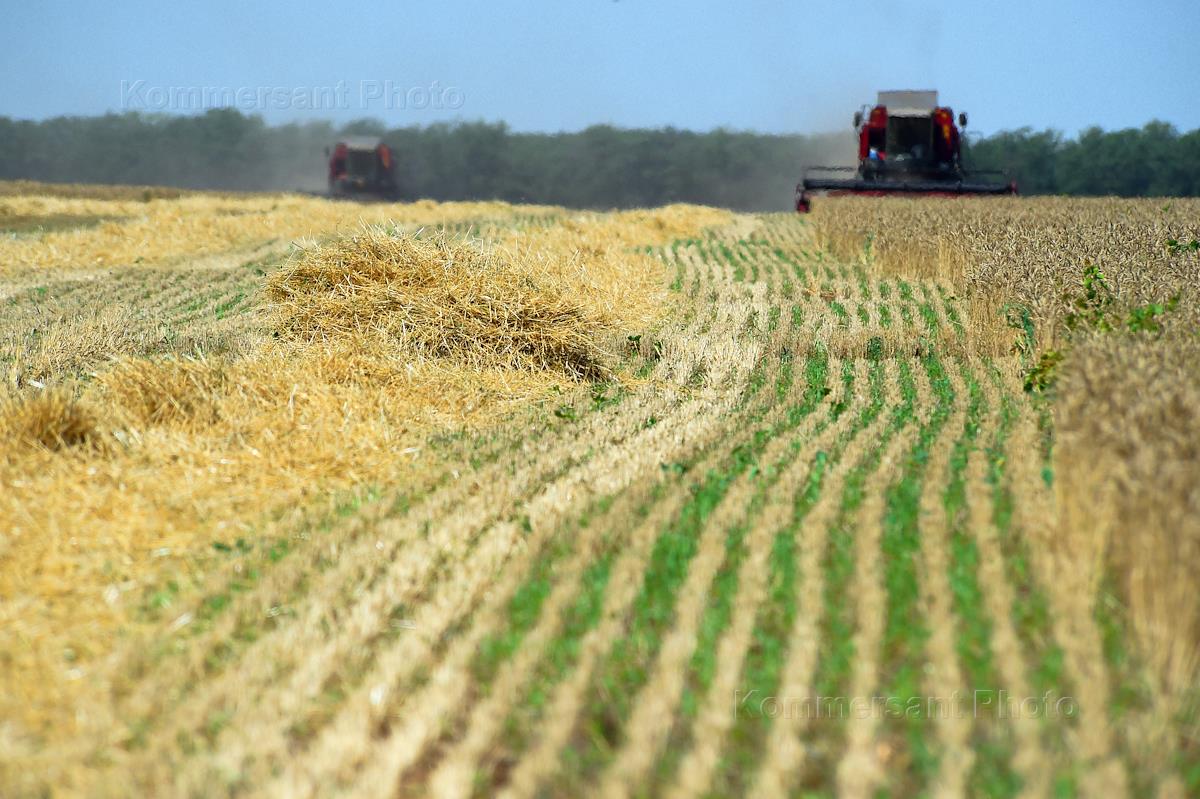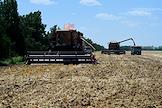 Сельскохозяйственные работы в Крыму. Жанровая фотография. Комбайны в поле во время уборки урожая.