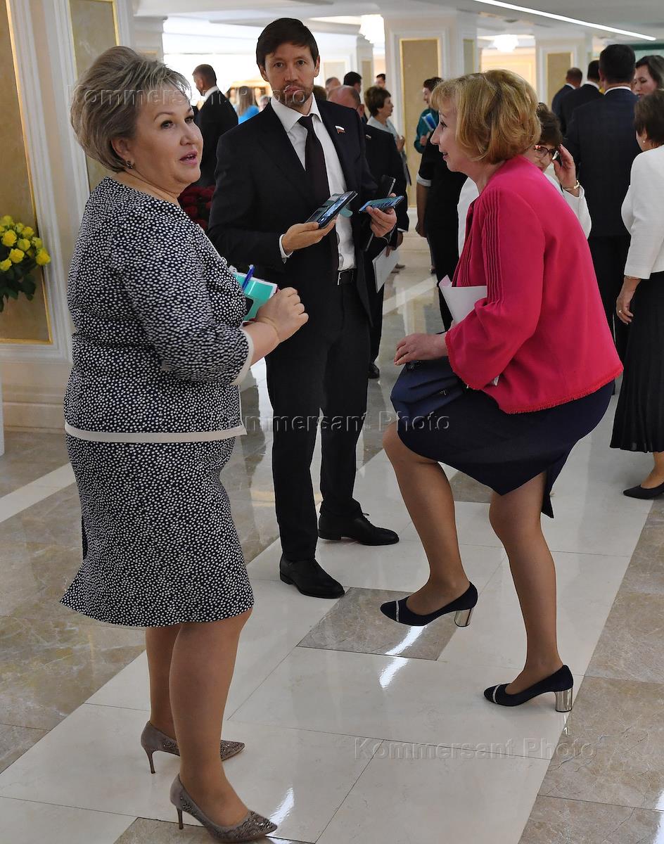 Заседание Совета Федерации (СФ) России. Закрытие весенней сессии. Представитель в Совете Федерации России от исполнительного органа государственной власти Удмуртской Республики Любовь Глебова (справа) перед началом заседания.
