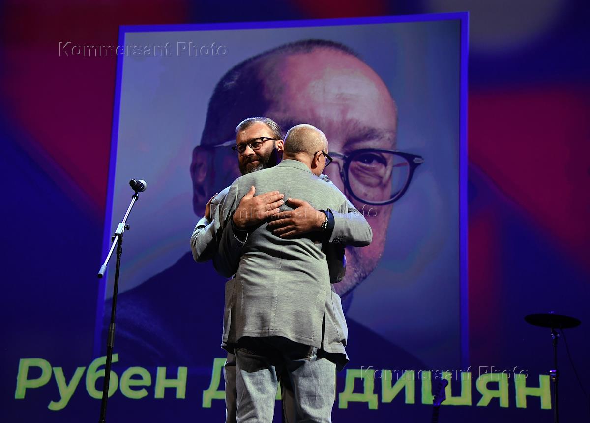 VI festival of new Russian cinema "Gorkiy fest". Opening ceremony at the Academic Drama Theater named after Maxim Gorky. Artistic director of the Yaroslavl Volkov Drama Theater, actor Sergei Puskepalis (right) before the ceremony.