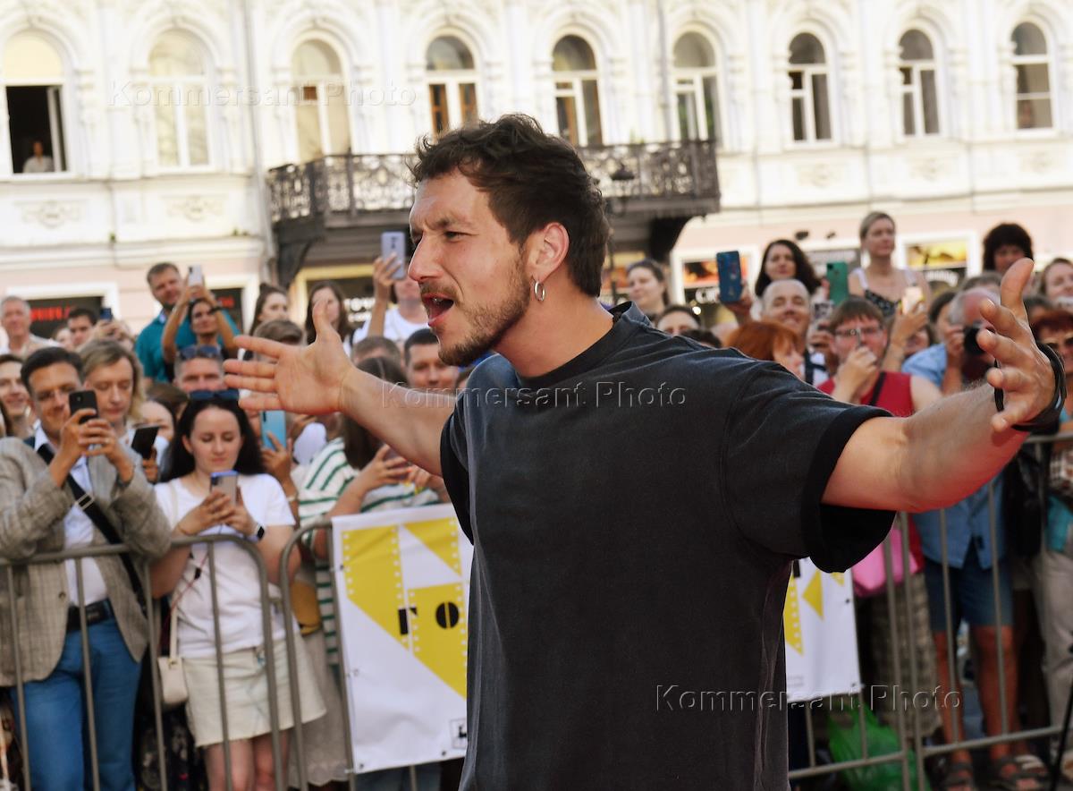 VI фестиваль нового российского кино "Горький fest". Церемония открытия в Академическом театре драмы имени Максима Горького. Актер Денис Бургазлиев перед началом церемонии.
