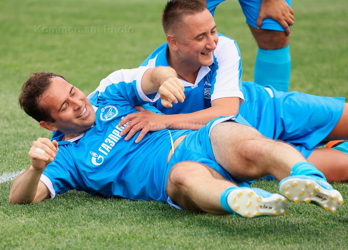 Матч легенд PARI между командами "Зенит" (Санкт-Петербург) - "Спартак" (Москва) на стадионе "Петровский". Игроки команды "Зенит" Андрей Аршавин (слева) во время матча и Александр Кержаков.