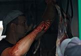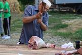 Праздник жертвоприношения Курбан-Байрам. Жанровая фотография. Разделка туши жертвенного барана во время обряда жертвоприношения.