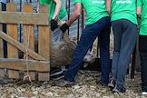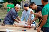 Праздник жертвоприношения Курбан-Байрам. Жанровая фотография. Волонтеры перед обрядом жертвоприношения.