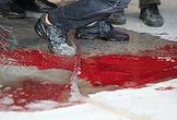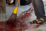 Праздник жертвоприношения Курбан-Байрам. Жанровая фотография. Кровь жертвенного барана во время обряда жертвоприношения.