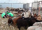 Праздник жертвоприношения Курбан-Байрам. Жанровая фотография. Жертвенные барашки перед обрядом жертвоприношения.