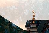 Празднование исламского религиозного праздника Курбан-Байрам в казанской мечети Аль-Марджани. Жанровая фотография.