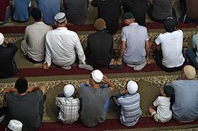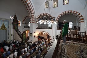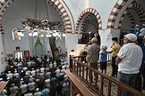 Мусульманский праздник жертвоприношения Курбан-Байрам. Жанровая фотография. Мусульмане в мечети Джума-Джами во время торжественного намаза.