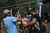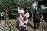 Мусульманский праздник жертвоприношения Курбан-Байрам. Жанровая фотография. Мусульмане во время обряда жертвоприношения.