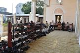 Мусульманский праздник жертвоприношения Курбан-Байрам. Жанровая фотография. Обувь верующих возле в мечети Джума-Джами во время торжественного намаза.