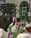 Празднование Дня семьи, любви и верности. Жанровая фотография. Молебен у памятника Святым благоверным князьям Петру и Февронии на площади имени Николая Островского.
