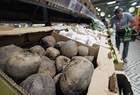 Супермаркет "Пятерочка". Покупатель в отделе "Оовощи" в торговом зале супермаркета.