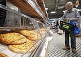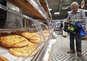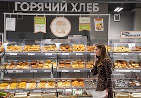 Супермаркет "Пятерочка". Покупатель в отделе "Хлеб" в торговом зале супермаркета.