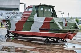 Военно-патриотический парк культуры и отдыха Вооруженных Сил (ВС) России "Патриот". Открытая экспозиция трофейной техники Вооруженных сил Украины (ВСУ). Бронекатер.