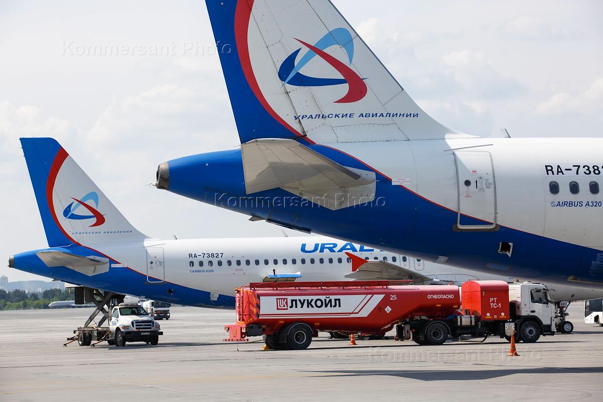 Презентация работы отечественной блокчейн платформы Smart Fuel. Жанровая фотография. Самолет компании UralAirlines на летном поле международного аэропорта Кольцово.