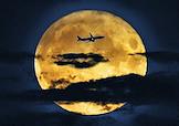 Жанровая фотография. Самолет на фоне полной луны во время суперлуния.