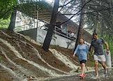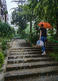 Виды Сочи во время дождя. Жанровая фотография. ПОтоки дождевой воды на лестнице возле жилого дома в микрорайоне Макаренко.