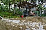Виды Сочи во время дождя. Жанровая фотография. Залитый дождем двор жилого дома в микрорайоне Макаренко.